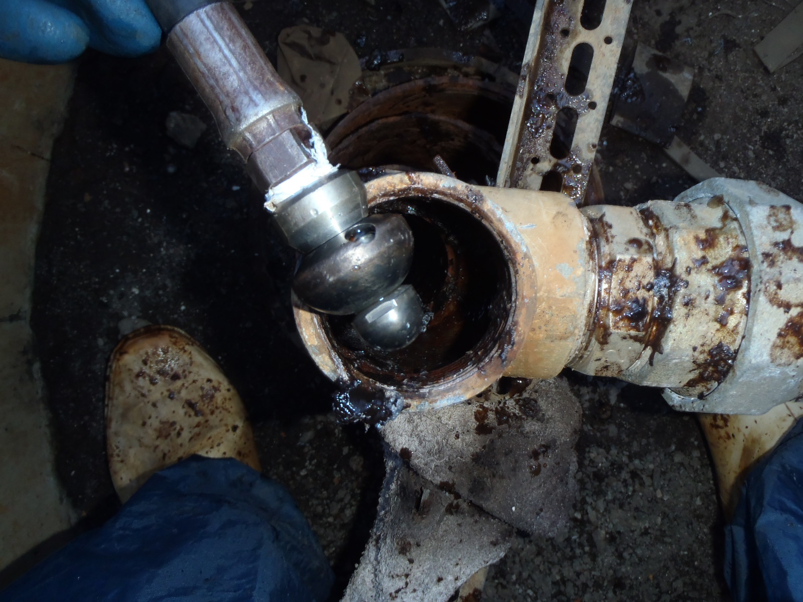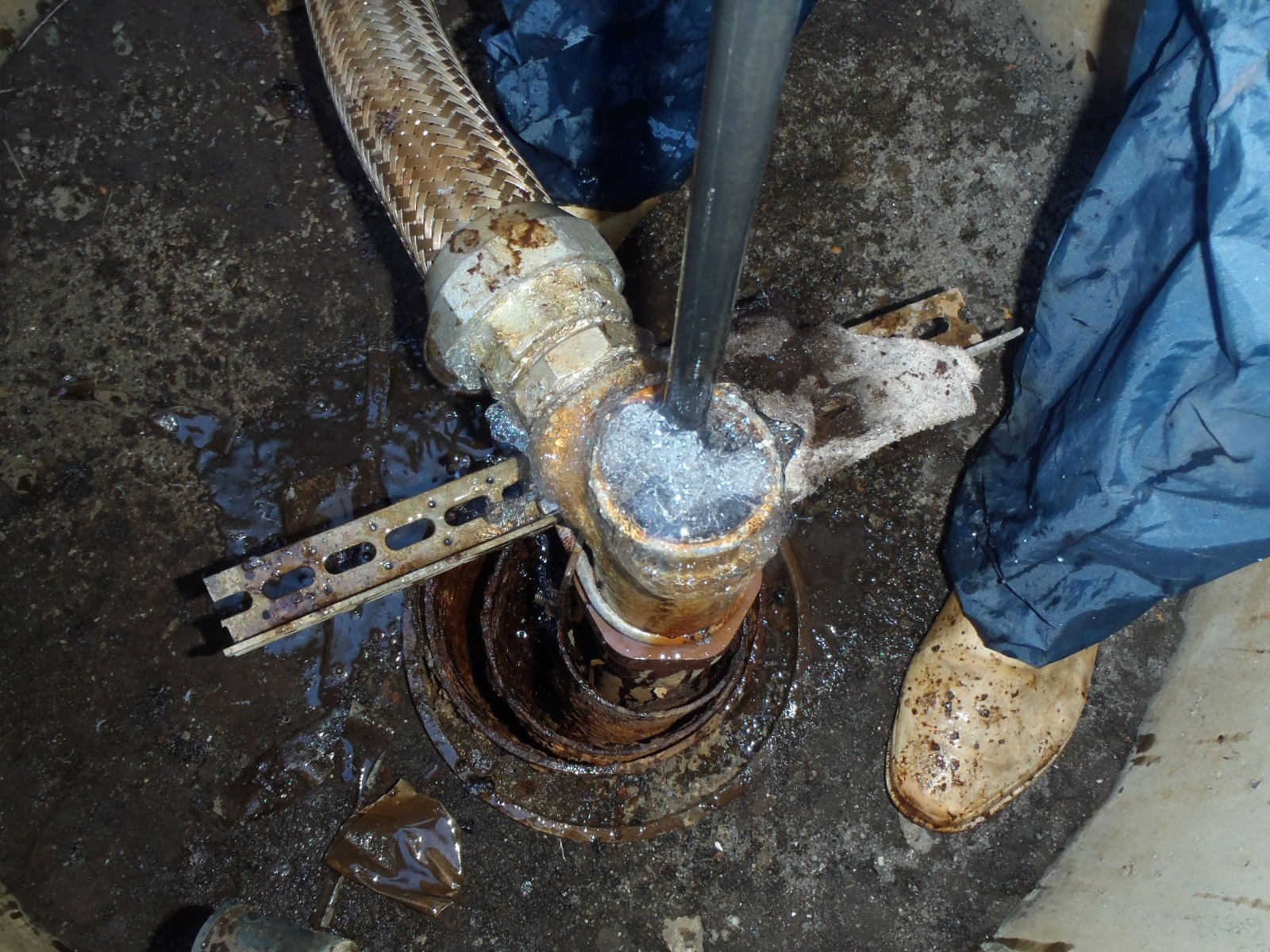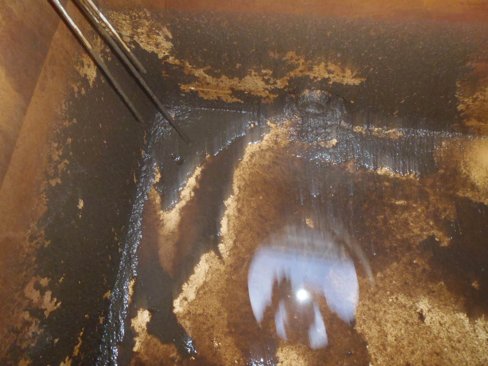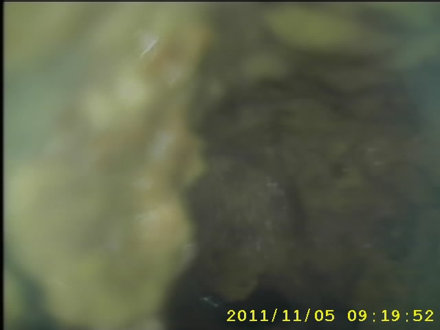 右記は温泉配管洗浄工事の一例として施工前と施工後の管内の写真です。